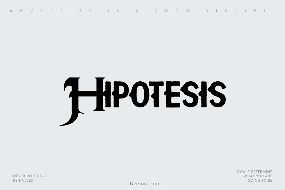 Hipotesis is a distinctive display typeface inspired by tattoo letters, chicano culture, and calligraffiti aesthetics. This striking font features bold and innovative character designs that capture attention in both digital and print environments. Perfect for logos, posters, branding, and modern graphics, Hipotesis combines geometric shapes with organic curves to create a contemporary yet impactful visual presence. Its unique character design makes it an exceptional choice for projects seeking to make a statement while maintaining visual interest and readability.