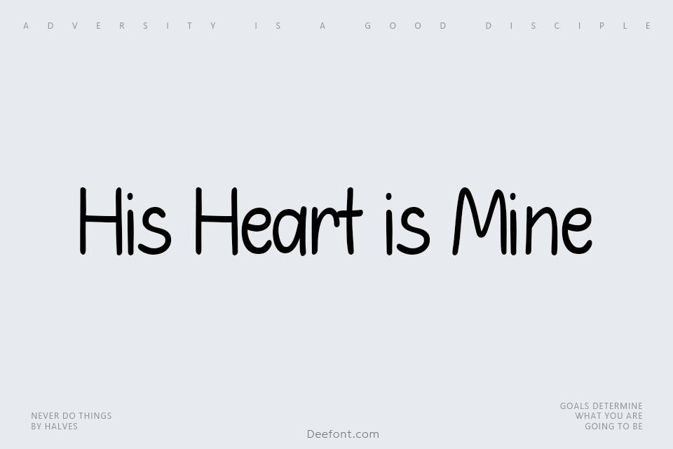 His Heart is Mine is an adorable handwritten script font inspired by Valentine’s Day, perfect for romantic occasions and heartfelt messages. This cute and playful font features 308 glyphs with elegant, easy-to-read characters crafted with attention to detail. It’s ideal for invitations, greeting cards, posters, and personal projects requiring a warm, inviting feel. With its charming design combining sweetness and sophistication, this font captures the essence of love and warmth in any creative work.