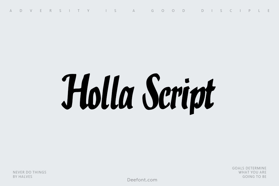 Holla Script is a stylish, elegant script font featuring gently curved strokes that deliver a friendly and approachable aesthetic. Created by Dieter Steffmann, this versatile display typeface combines casual sophistication with flowing hand-lettered charm, making it perfect for headlines, branding, stationery, and creative projects that require a touch of playful elegance and distinctive character.