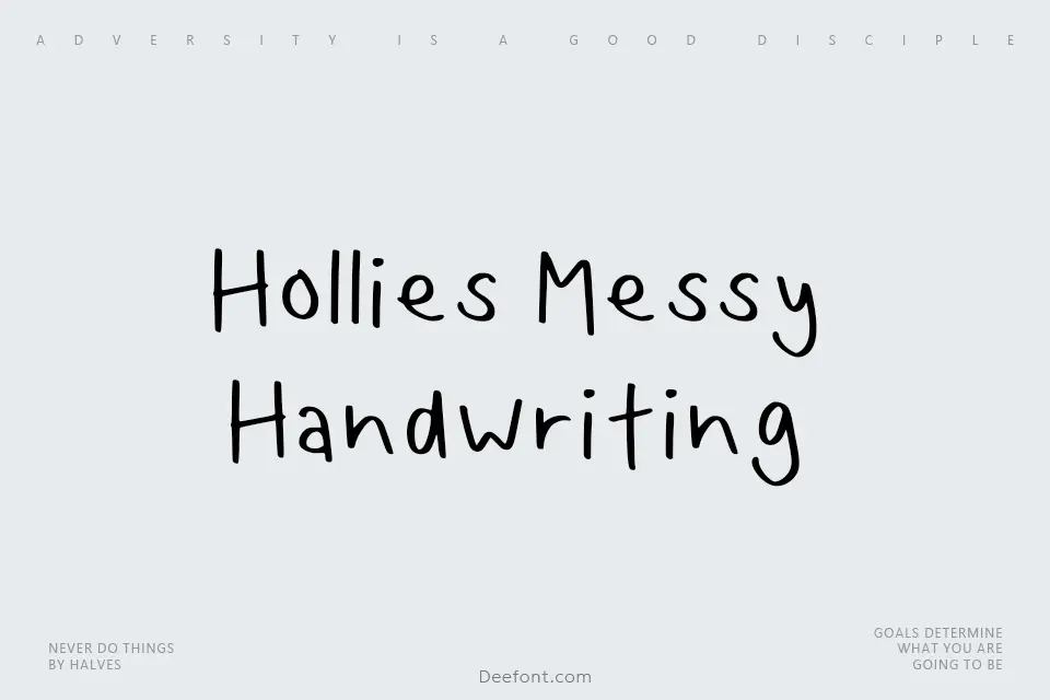 Hollies Messy Handwriting is a casual, imperfect handwritten script font that captures the charm of natural pen strokes with irregular baseline and organic letterforms. Designed to infuse projects with authentic personality and whimsical character, this typeface excels in creating eye-catching display text for creative applications including posters, greeting cards, invitation designs, and artistic titles that require a genuine handmade aesthetic.