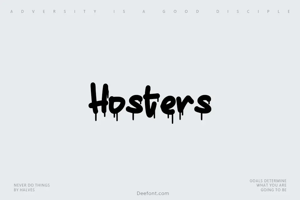 Hosters is a vibrant graffiti bubble font that captures the essence of street art with its playful dripping effect and colorful design. This expertly crafted display font brings joyful energy to logos, headlines, branding, t-shirts, and posters. With support for multilingual characters, ligatures, and swashes, Hosters transforms your creative projects with authentic urban flair and dynamic visual impact for designs that demand attention.