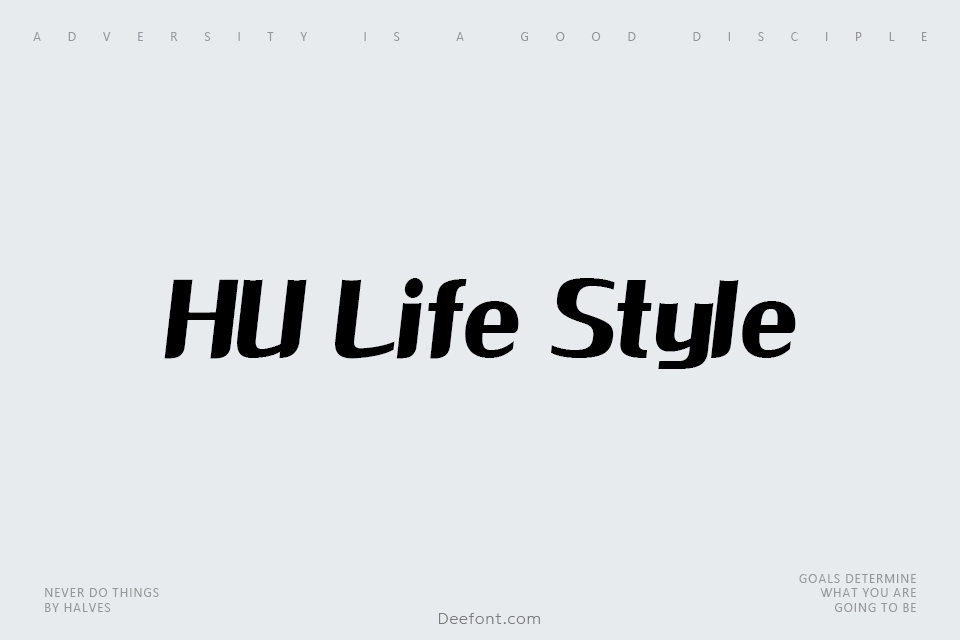 HU Life Style is a bold headline display font designed with harmonious curves and straight lines. The font features rounded diagonal stroke endings and relatively thin horizontal strokes, creating a rhythmic visual balance. With its thick and large letterforms, this typeface excels at commanding attention in graphic designs. Perfect for headlines, signage, and creative branding projects seeking contemporary visual impact.