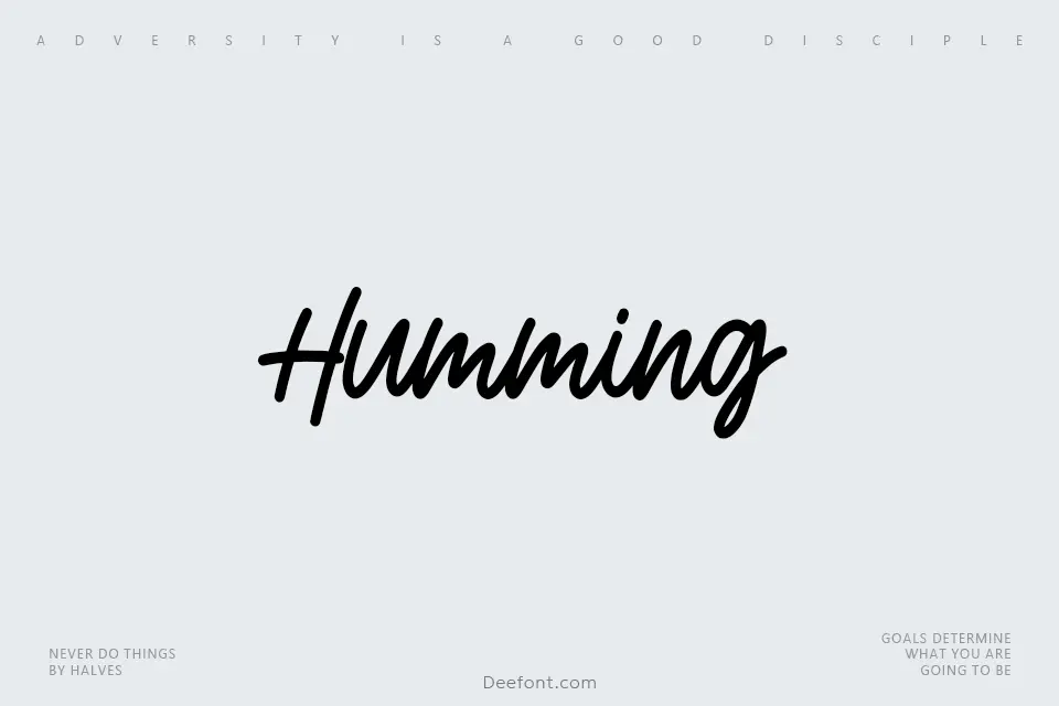Humming is a charming handwritten script typeface that brings natural, organic elegance to your designs. With its flowing strokes and casual yet refined aesthetic, this font excels at adding a personal, authentic touch to wedding invitations, greeting cards, and event announcements. The typeface features smooth letterforms with gentle curves, making it ideal for display purposes, poster design, and creative typography projects. Its 206 glyphs support diverse character sets including accents and special symbols, providing flexibility for multilingual applications. Perfect for designers seeking warmth and personality in their branding and decorative compositions.
