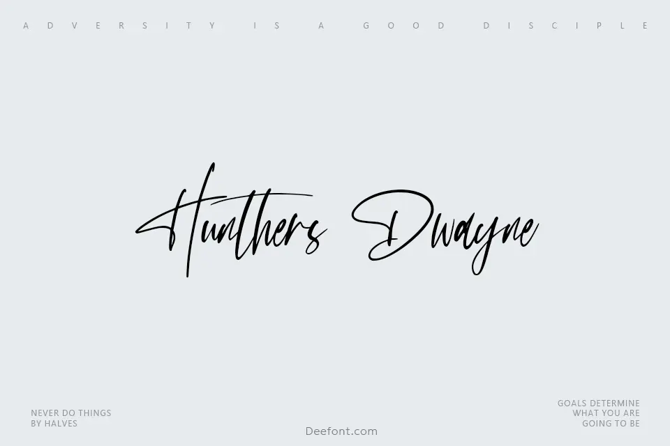 Hunthers Dwayne is a delicate, elegant and flowing handwritten script font featuring graceful, well-balanced characters that bring natural sophistication to creative designs. This fluid typeface excels in wedding invitations, signature branding, poster designs, and elegant display applications. The smooth brush-like letterforms create an authentic handwritten aesthetic that conveys refinement and personal touch, making it ideal for luxury packaging, greeting cards, social media graphics, and any project demanding an upscale, organic typography solution for high-impact visual communication.