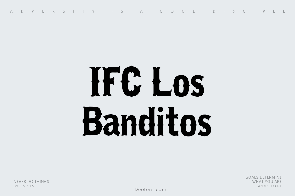 IFC Los Banditos is a striking Western-style display font designed to capture the bold, rugged spirit of the Wild West. Featuring thick, angular letterforms with decorative elements, this typeface is perfect for posters, branding, signage, and eye-catching design projects that demand authentic Western authenticity. Created by renowned font designer Anton Krylov, IFC Los Banditos combines vintage Western charm with modern versatility, making it an ideal choice for creating memorable headlines, promotional materials, and decorative typography that stands out. The font supports multiple languages and includes comprehensive glyph coverage, ensuring consistency across diverse design applications and creative endeavors.