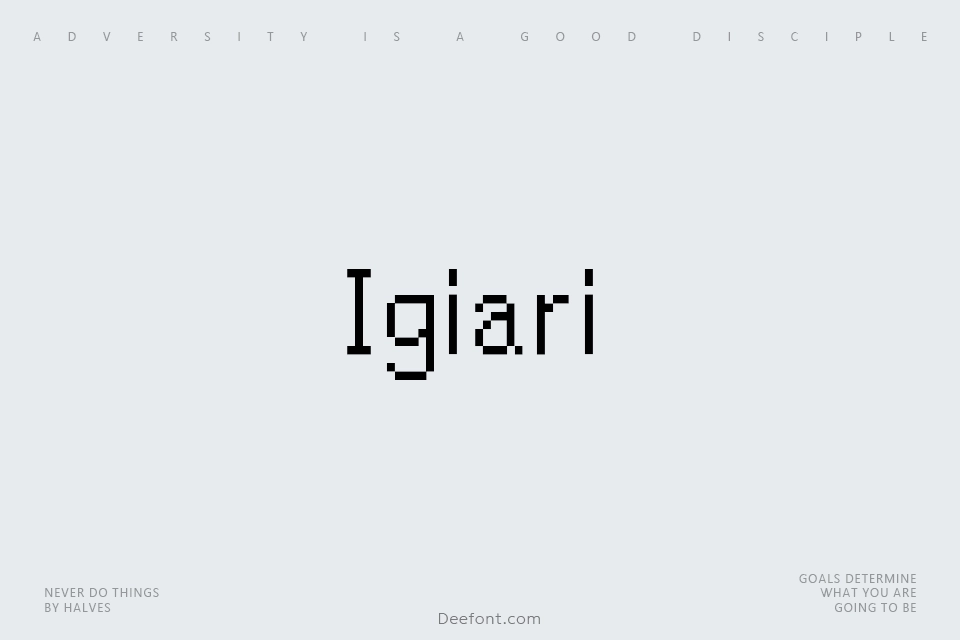 Igiari is a proportional sans-serif pixel font recreation meticulously designed by Caveras, based on the original main text font from the Ace Attorney video game series for GameBoy Advance and Nintendo DS. This comprehensive typeface includes the complete Japanese hiragana and katakana character sets from Phoenix Wright: Ace Attorney alongside 847+ additional characters, featuring authentic Borginian language dingbats and special glyphs that capture the spirit of the original in-game design. Perfect for retro gaming projects, typography enthusiasts, and nostalgic creative applications.