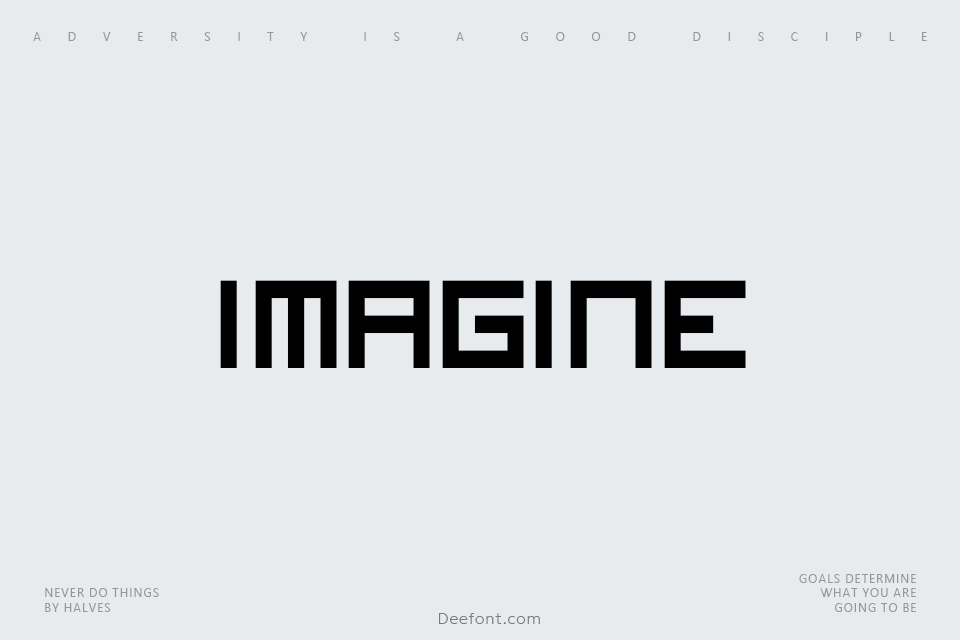 Imagine Font is a distinctive futuristic square typeface designed for modern creative projects. This techno-inspired display font features geometric precision and clean lines, making it ideal for headlines, titles, and eye-catching designs. Originally created for the ImagineEarth.info game project, the font combines contemporary aesthetics with technological flair. With comprehensive glyph support for various languages, Imagine Font offers versatility for international design work while maintaining its unique minimalist character.
