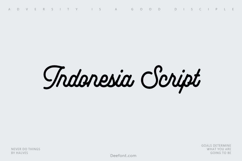 Indonesia Script is a bold, curvy, and playful fully-connected monolined script font designed for creative typography. Featuring fancy alternate uppercase letters and diverse lowercase alternatives, this font is ideal for posters, logotypes, and branding projects. With comprehensive language support and a companion display font (Dermawan Sans), it delivers sophisticated typographic solutions for headings and titles across multiple media formats.