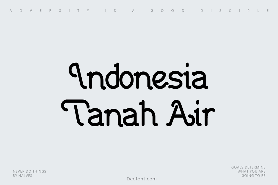 Indonesia Tanah Air is a decorative display font created by designer weknow, featuring 653 unique glyphs with distinctive retro and ornamental characteristics. This fanciful typeface combines various visual elements suitable for creative typography projects, postcards, and artistic designs. Supporting 66 languages, it offers versatile styling options for both personal and professional creative endeavors.