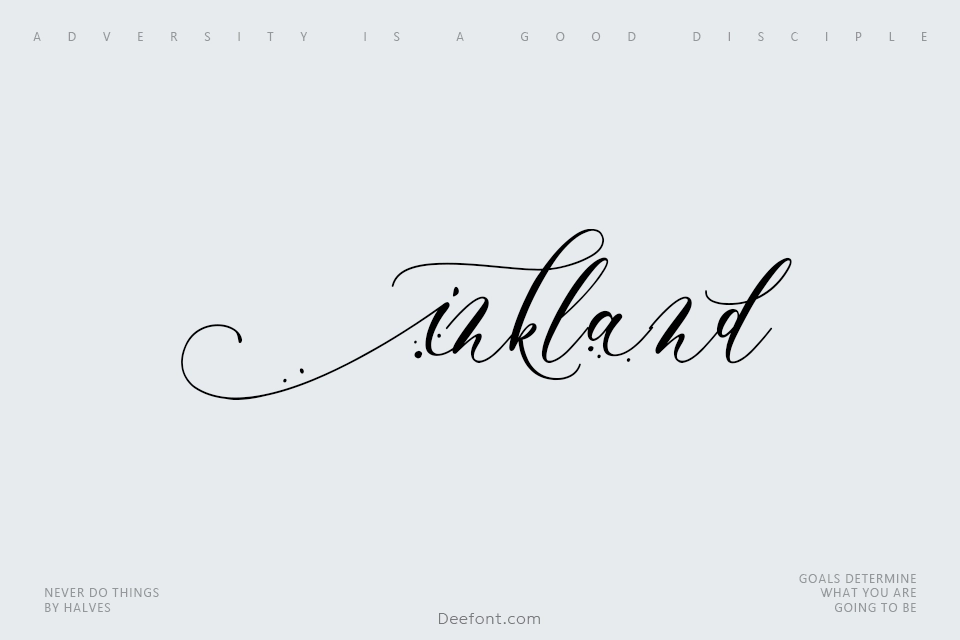 Inkland is a beautifully ornate handwritten script font designed with elegant calligraphic flourishes and decorative endings. This signature typeface features sophisticated curves and swashes that add exceptional style to wedding invitations, branding projects, stationery, and artistic designs. Perfect for creative professionals seeking to infuse their typography with refined elegance and handwritten charm, Inkland transforms ordinary text into visually stunning compositions with its ornamental appeal.
