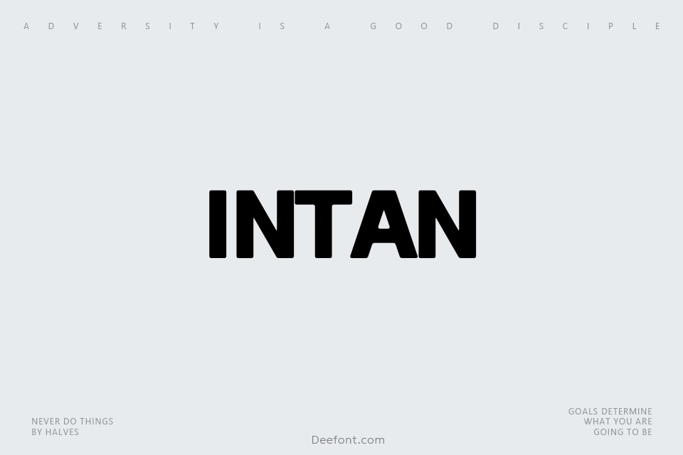 Intan is a striking modern sans-serif font featuring clean geometric letterforms and smooth curves that convey sophistication and elegance. Designed with bold strokes and sharp angular terminals, this versatile typeface is perfect for branding, packaging, logos, magazines, and digital interfaces. Its contemporary aesthetic seamlessly transitions between formal and informal contexts, making it an ideal choice for designers seeking a sophisticated typographic element to elevate their projects.