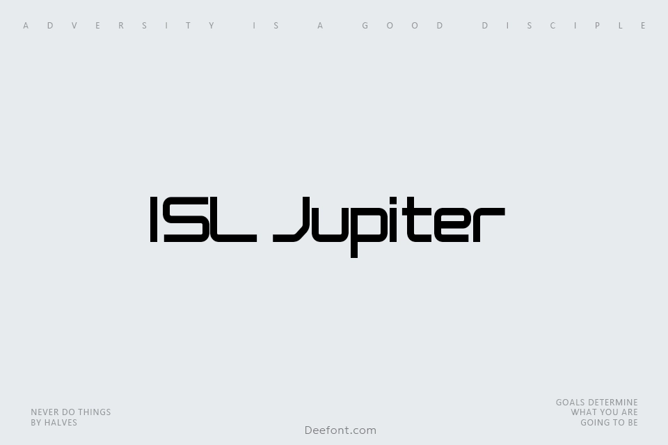 ISL Jupiter is a striking futuristic typeface inspired by Mass Effect, featuring bold sci-fi aesthetics with an international character map. Designed by Derik Schneider from Isurus Labs, this technologically-driven font delivers a modern, sleek appearance perfect for gaming interfaces, digital displays, and contemporary design projects. With its sharp angular forms and distinctive digital styling, ISL Jupiter stands out as an excellent choice for creative professionals seeking cutting-edge typography solutions for their digital and print ventures.
