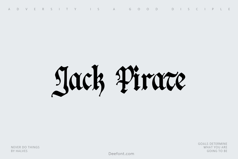 Jack Pirate is a hand-drawn blackletter typeface featuring authentic medieval and fraktur-inspired letter forms. Created with genuine gothic styling, it brings a sense of nostalgia and dramatic character to your designs. Perfect for posters, logos, headers, and banner ads that demand historical authenticity and visual impact.