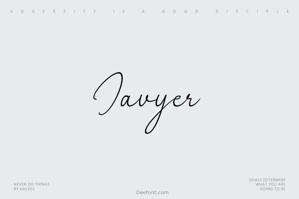 Javyer is a stunning handwritten font designed by Din Studio that exudes elegance and charm. With its natural flowing strokes, decorative swashes, and extensive ligatures, this script typeface adds a personal touch to any design. It is perfectly suited for wedding invitations, social media branding, photography watermarks, and product packaging.