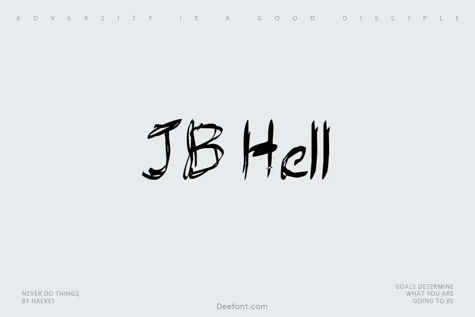JB Hell Font is an energetic display script featuring hand-drawn, jagged letterforms with rough edges that create an edgy, distressed aesthetic. Originally designed by Julie Bush in 2005, this typeface excels for eye-catching headlines, album covers, graffiti-inspired artwork, and creative branding projects. With 653 glyphs, JB Hell combines ornamental elements with modern expressiveness, making it ideal for Halloween designs, horror-themed content, tattoo artwork, and poster creation. The font’s unique modular construction delivers strong visual impact suitable for tattoos, album artwork, and unconventional graphic design.