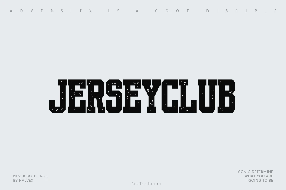 Jerseyclub is a bold and dynamic sports-inspired font family designed to bring energy and grit to your projects. Featuring a rugged, grunge-style texture, this typeface captures the essence of athleticism and competition, making it perfect for sports branding, team jerseys, posters, and merchandise. Its strong, blocky letterforms ensure maximum readability while exuding a commanding presence. Created by Royalclub, Jerseyclub offers versatility for both print and digital applications, allowing designers to craft impactful visuals with ease. Whether you’re designing for basketball, football, or any high-energy event, Jerseyclub adds a bold and competitive edge to your typography.