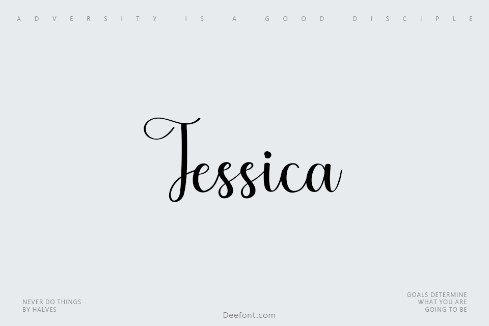 Jessica is a charming and playful script font that brings elegance to any creative project. Designed by Erik Studio, this calligraphy typeface features delicate, flowing characters that dance gracefully along the baseline. Perfect for wedding invitations, greeting cards, branding designs, and social media graphics, Jessica offers a feminine and whimsical aesthetic. Its versatile design makes it suitable for projects requiring an inviting, approachable, and refined typographic presence.