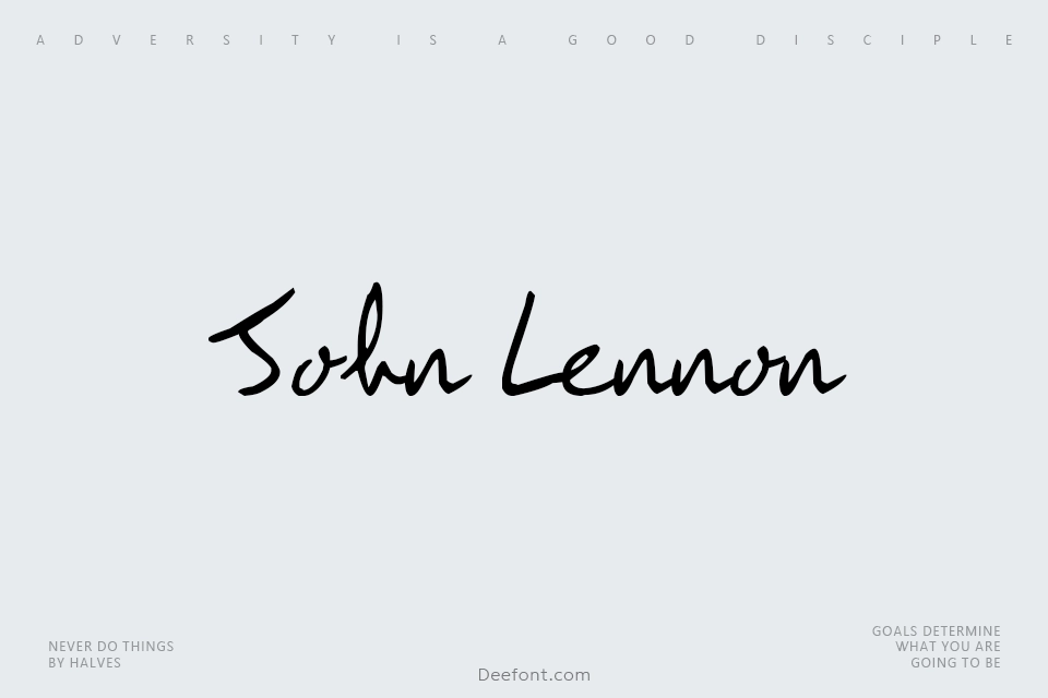 John Lennon is a distinctive script typeface based on the authentic handwriting and artistic style of the legendary musician John Lennon. Created by designer Analia Wainer Criscuolo, this font captures the characteristic elegance and flowing nature of Lennon’s personal writing. With 163 glyphs and comprehensive language support, it brings a creative, personal touch to any design project. Perfect for music-related content, creative communications, and artistic typography work, this handwritten font delivers an iconic aesthetic inspired by one of music’s greatest innovators.