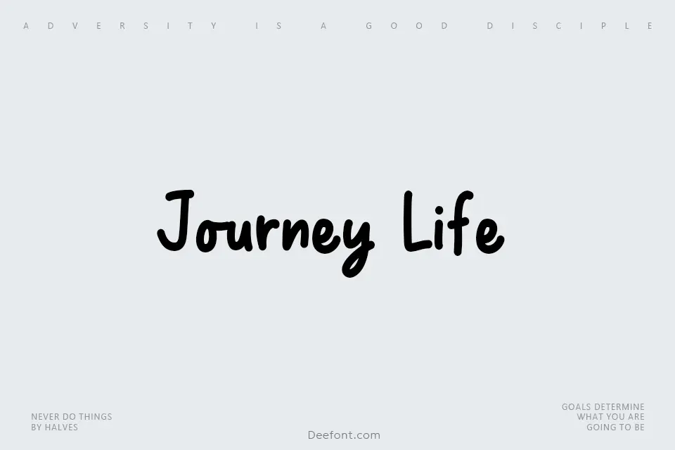 Journey Life is an elegant and flowing handwritten script font featuring smooth, natural pen strokes that capture the essence of authentic personal expression. With its organic curves and fluid letterforms, this typeface evokes the warmth of handwritten travel journals, love letters, and diary entries. Ideal for wedding invitations, greeting cards, creative posters, branding projects, and any design requiring an intimate, personal touch. The font combines sophisticated elegance with approachable charm, making it versatile for both romantic and contemporary design applications. Perfect for designers seeking authentic handwriting aesthetics with professional polish.