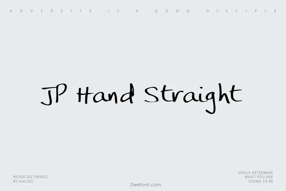 JP Hand Straight is a clean, legible handwritten font designed by Jonathan Paterson. Its uniform strokes and upright stance give it a friendly yet organized appearance, distinguishing it from messier scrawl styles. Ideal for digital notes, comic dialogue, education materials, and casual branding, this typeface adds a personal human touch without sacrificing readability in varied sizes.