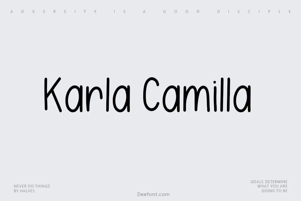 Karla Camilla is an elegant and flowing handwritten script font that captures the warmth of natural pen strokes with its graceful letterforms and organic rhythm. Perfect for invitations, greeting cards, posters, and any project requiring an authentic personal touch, this typeface brings sophistication to headlines, branding, and decorative applications. The smooth, connected style makes it ideal for wedding designs, special occasion materials, and creative packaging that demands elegance and charm. With its natural flow and refined aesthetic, Karla Camilla elevates any design project needing a human, personalized approach.
