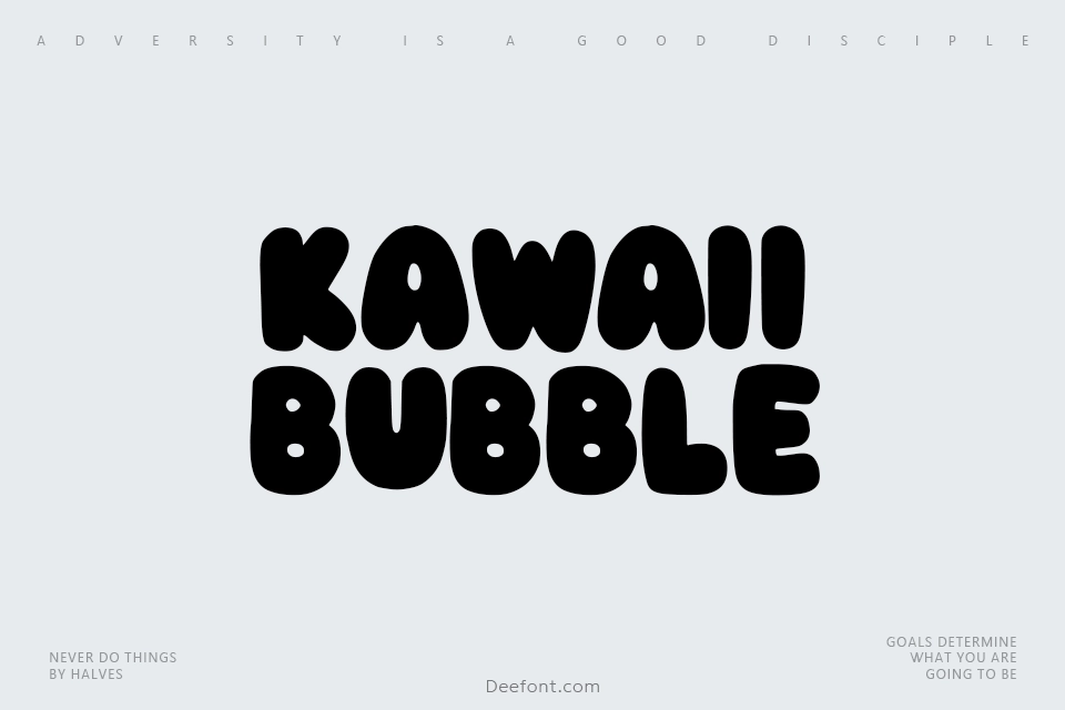 Kawaii Bubble is a playful and whimsical rounded bubble-style display font featuring bold, uniform characters with a cheerful aesthetic. Created to bring joy and creativity to design projects, this decorative typeface excels in children’s books, playful branding, comic strips, party invitations, and creative posters. With its cartoon-inspired bubble letters and low contrast design, it delivers a youthful and lighthearted visual experience perfect for any project requiring a touch of fun and whimsy.