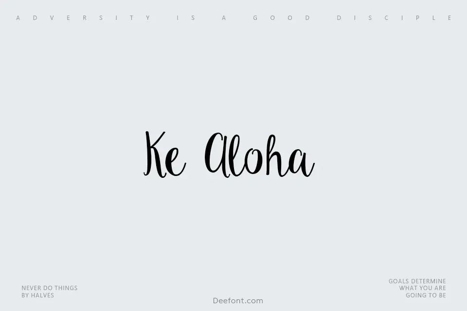 Ke Aloha is a warm and refined hand-lettered script font designed by Emily Spadoni, capturing the essence of Hawaiian-inspired typography with its flowing, casual letterforms and elegant brush-like strokes. The font features 300 glyphs including ornamental elements, offering over 50 hand-drawn floral decorative components such as tropical leaves, flowers, and ornamental flourishes. Ideal for creative projects including wedding invitations, posters, logos, greeting cards, social media graphics, and festive designs. The connected characters and natural variations create an authentic handwritten aesthetic that works beautifully for titles, headers, and decorative applications in both print and digital media.