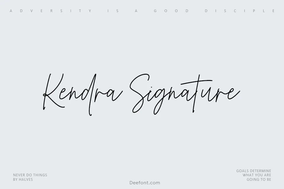 Kendra Signature Font is a modern handwritten signature script with a monoline, stylish design that brings an authentic and elegant touch to your projects. Perfect for branding, websites, blog headers, personal branding, logos, social media, advertisements, movies, TV broadcasts, and more, this font offers versatility and sophistication for a wide range of creative applications.