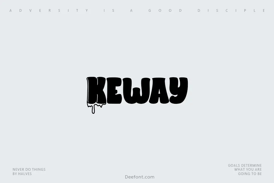 Keway is a bold and playful graffiti font characterized by its distinctive melting icicle effect and dripping letters. Designed with a retro eighties aesthetic, this display typeface excels in creating eye-catching headlines, posters, and creative branding projects. Perfect for designers seeking a unique, rebellious character with modern appeal, Keway delivers both personality and professionalism for contemporary urban-style designs and decorative typography applications.