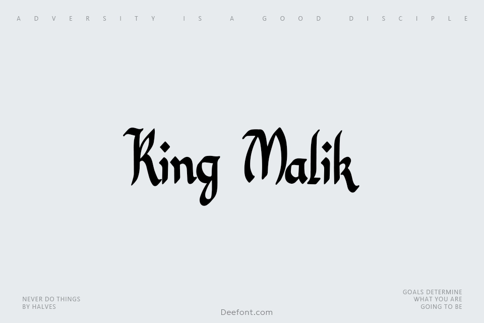 King Malik is an intriguing display font inspired by Turkish typographic traditions and Arabic aesthetic sensibilities. This distinctive typeface features a foreign look with decorative characteristics, making it ideal for branding projects, logo designs, and Turkish-themed creative ventures. With its strong visual presence and unique stylistic appeal, King Malik delivers artistic typography that stands out, perfect for display applications and brand identity work.