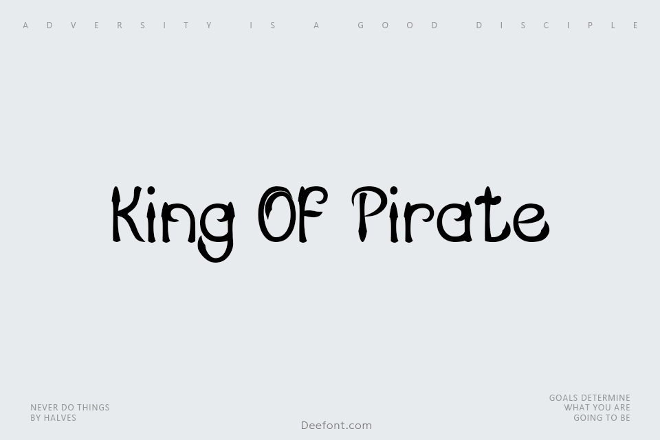 King Of Pirate is a decorative display font featuring bold and adventurous maritime-inspired design with distinctive embellishments and sharp edges. Crafted by weknow font foundry, this playful typeface combines pirate-themed aesthetics with theatrical flair, making it ideal for headlines, posters, book covers, video game titles, and creative projects requiring dramatic visual impact and fantasy elements.