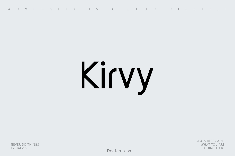 Kirvy is a modern, versatile sans-serif typeface family featuring four carefully crafted weights: Thin, Light, Regular, and Bold. Designed for both headline and body text applications, this geometric sans-serif font offers clean lines and contemporary aesthetics. Its balanced proportions and excellent legibility make it ideal for web design, branding, editorial layouts, and digital media projects. With support for multiple languages and comprehensive Unicode coverage, Kirvy delivers professional-quality typography suitable for any creative endeavor.