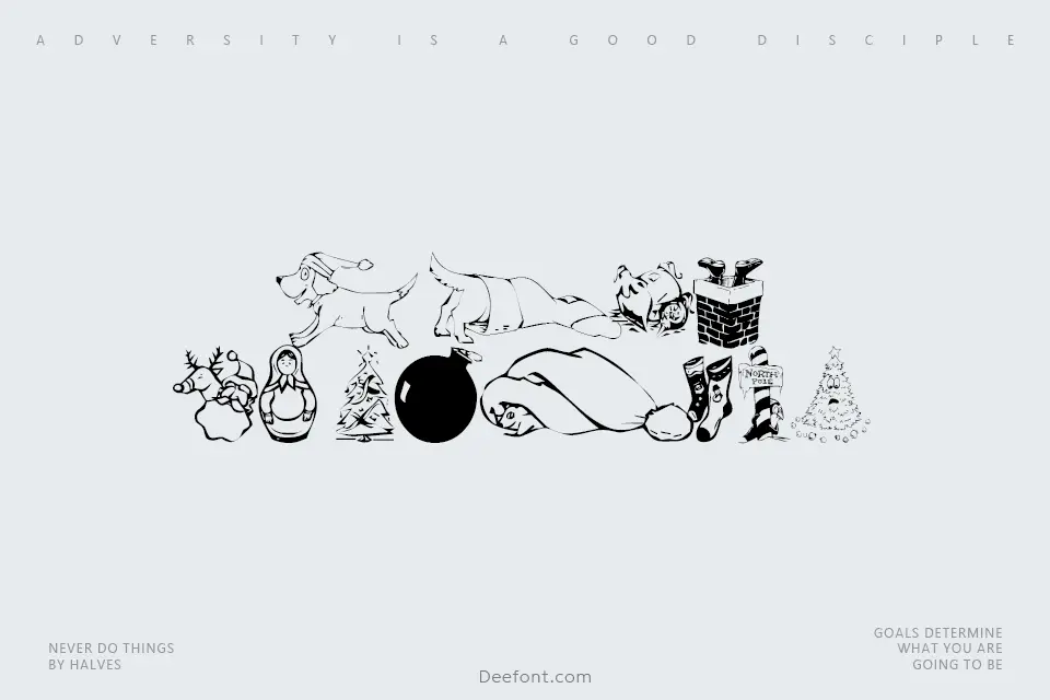 KR Christmas Dings 2004 is a festive dingbat font featuring an array of Christmas-themed decorative icons. This ornamental typeface includes holiday symbols such as reindeer, holly leaves, bells, candles, sleighs, gifts, and other seasonal embellishments. With its whimsical and playful design, the font is perfectly suited for holiday greeting cards, festive invitations, Christmas-themed posters, and seasonal decorations. The bold and easily recognizable icons work effectively for both digital and print media applications, making it an ideal choice for adding festive charm to creative projects.
