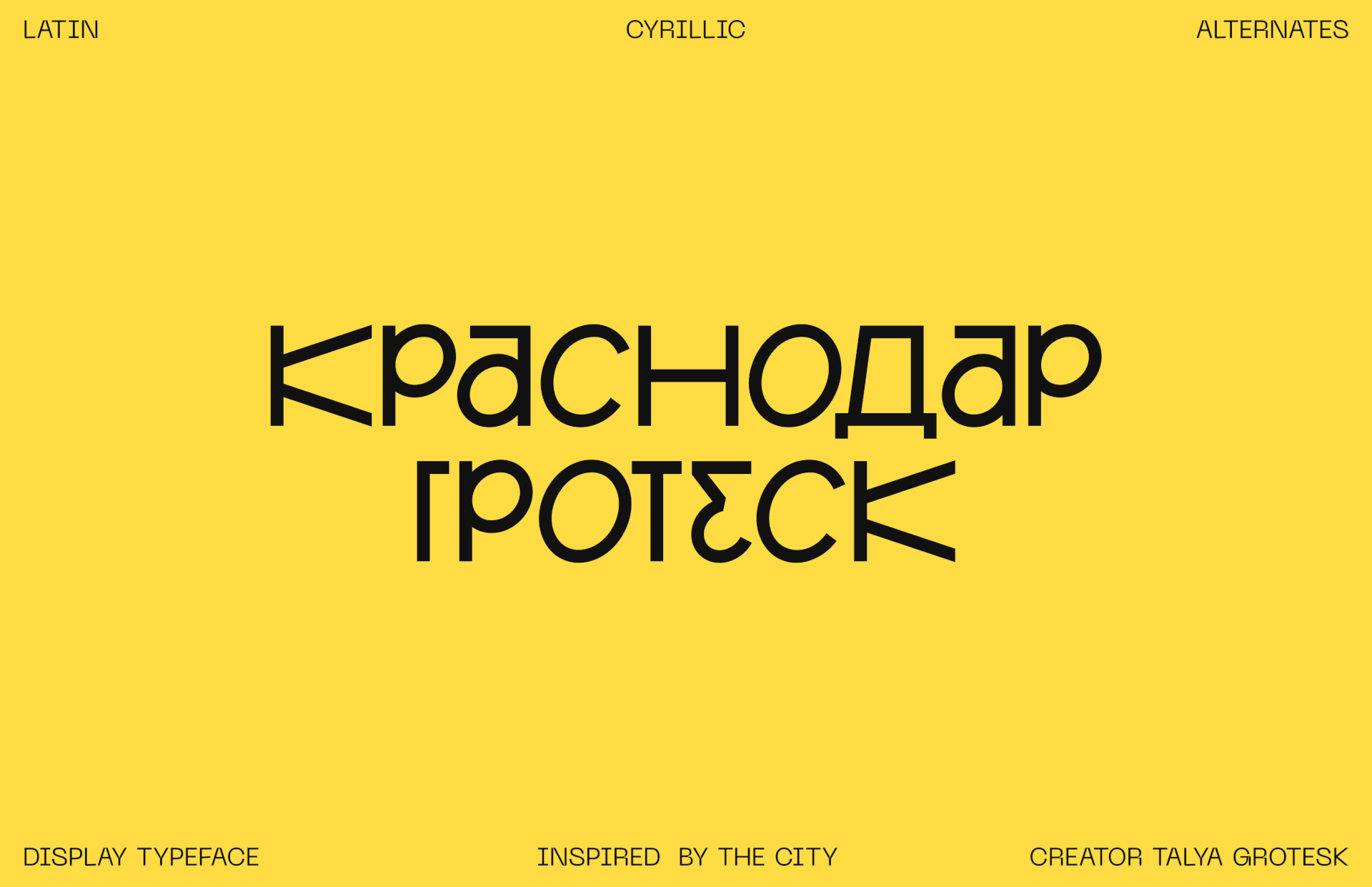 Krasnodar Grotesk is ideal for headlines, logos, posters, small text, and various graphic elements. Its strict yet rebellious character will capture attention and infuse your project with a unique sense of style.