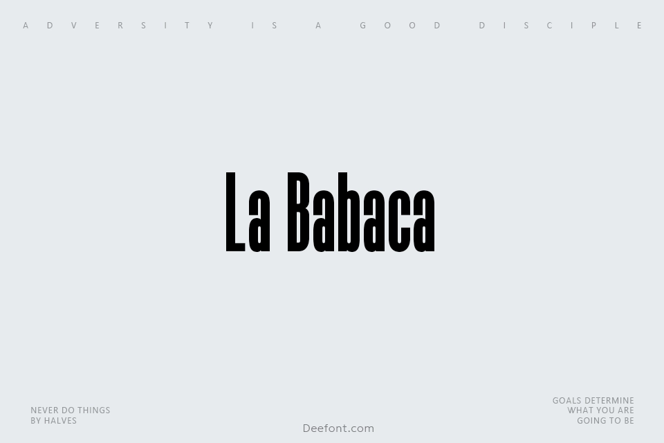 La Babaca is a bold black sans-serif typeface characterized by compressed geometric forms and simple construction, delivering an unadorned display font perfect for large titles. Its distinctive minimalist design provides exceptional space efficiency while maintaining excellent readability and strong visual personality. Ideal for graphic design, book layouts, and magazine design, this font features extended Latin support with Greek characters in the full commercial version, complemented by advanced OpenType functions for professional design applications.