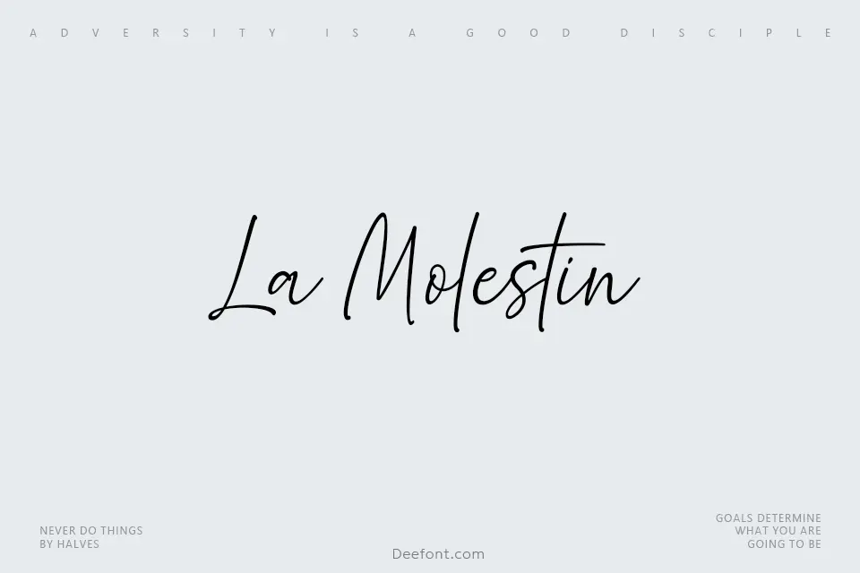 La Molestin is a captivating handwritten script font that combines modern elegance with natural, flowing strokes. Designed with meticulous attention to detail, this typeface features organic letterforms that evoke sophisticated charm and warm, inviting personality. Its subtle variations in stroke weight and expressive yet legible characters create an authentic calligraphic aesthetic perfect for adding personal sophistication to any creative endeavor. Ideal for wedding stationery, branding projects, and personalized designs.