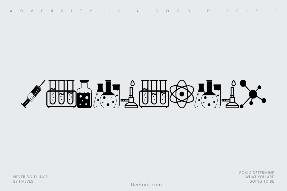 Laboratory is a distinctive dingbats font featuring 236 imaginative symbols and abstract illustrations compiled and vectorized by designer Woodcutter. This versatile typeface combines creative elements perfect for posters, t-shirts, magazines, stickers, and digital designs, offering a playful approach to symbolic communication.