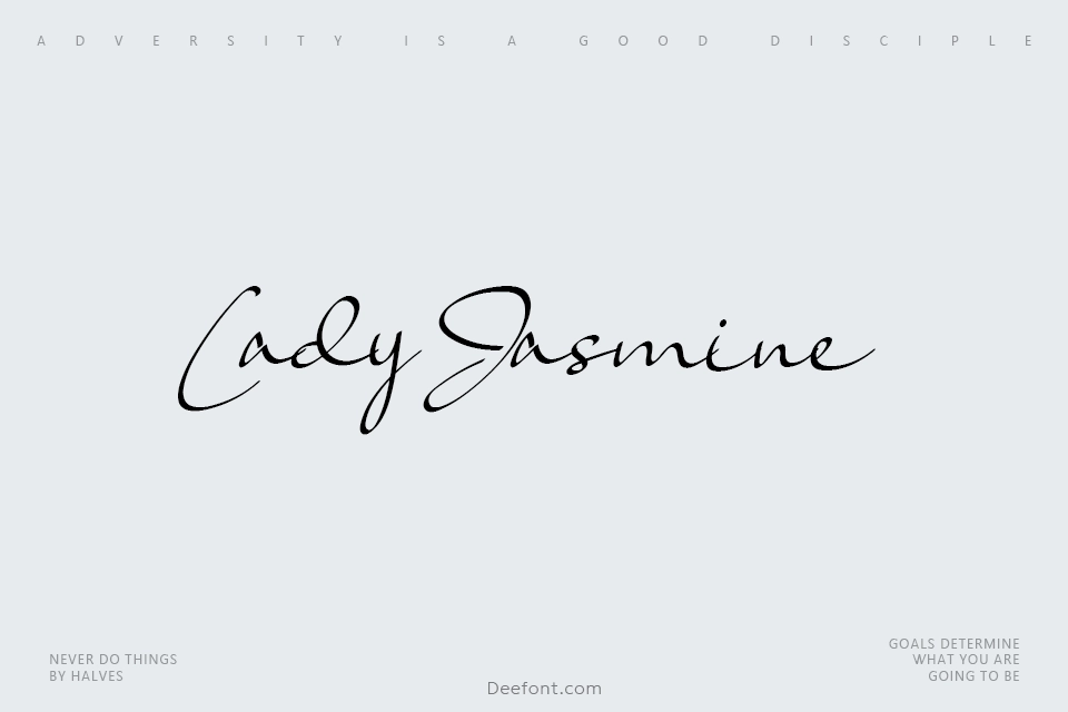 Lady Jasmine is an elegant and sophisticated handwritten script font inspired by nature with a modern touch. Featuring flowing, cursive characters with graceful sweeping curves and delicate loops, this font delivers timeless elegance for upscale projects. The font comprises 133 carefully crafted characters with varied stroke thickness that creates subtle contrast while maintaining excellent readability. Perfect for wedding invitations, luxury branding, personal stationery, elegant packaging, and sophisticated design projects requiring a touch of refined personalization and contemporary flair.