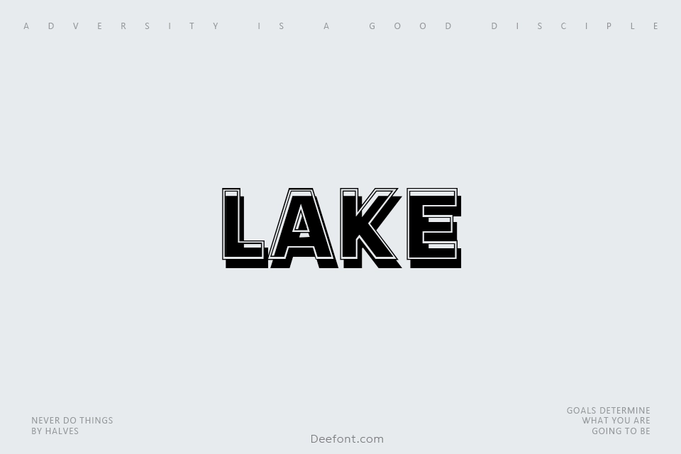 Lake is a 100% free decorative display font designed by Vladimir Nikolic, featuring a retro and fancy aesthetic perfect for titles and headings. With its vintage charm and ornate character styling, this typeface brings nostalgic elegance to your creative projects, offering approximately 89 glyphs for comprehensive character support and making it an ideal choice for posters, headers, and decorative typography applications.