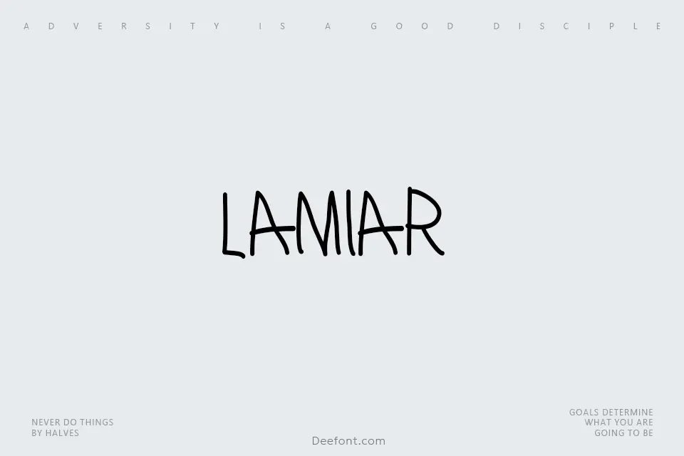 Lamiar is a decorative, fun sans-serif handwritten font featuring rounded monoline strokes and a casual, playful character. With its informal glyph quality and slightly tilted letterforms, this font delivers fancy, unique visual appeal ideal for display typography in posters, branding materials, book covers, and creative packaging design.