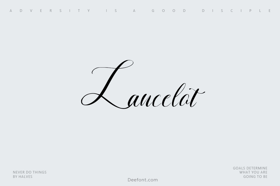 Lancelot is an elegant, hand-lettered script font featuring a heavy right slant that perfectly balances casual and captivating lettering. Designed with traditional calligraphy influences and modern appeal, it delivers sophisticated typography ideal for invitations, branding, editorial design, weddings, and special occasion projects. The font includes comprehensive character support with uppercase, lowercase, numbers, symbols, punctuation, and ornament characters with PUA encoding for seamless customization.