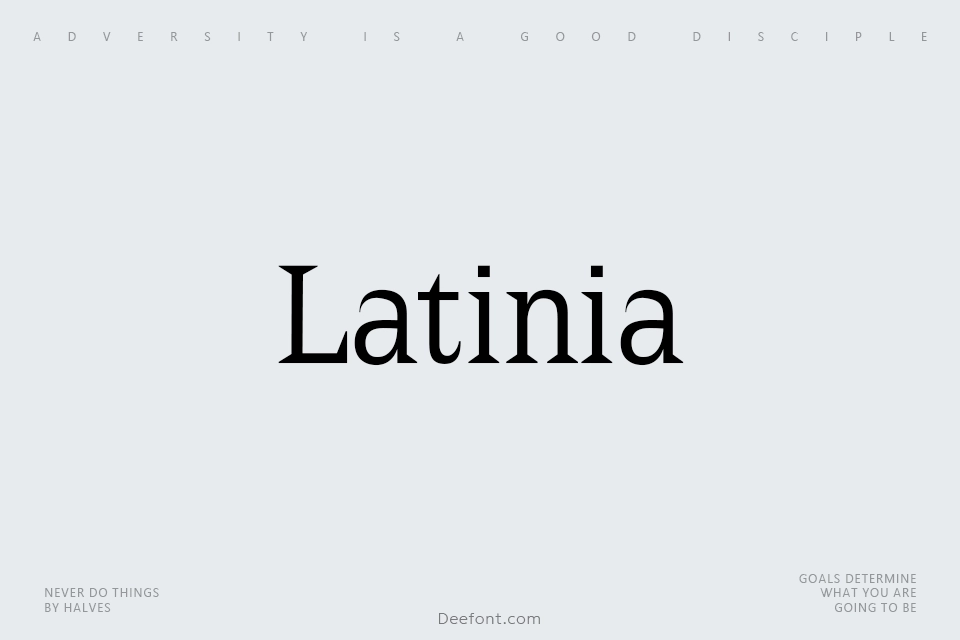 Latinia is a classic serif typeface designed by legendary typographer Manfred Klein. This elegant font features timeless letterforms with refined proportions and chiseled strokes, perfect for creating sophisticated typography in editorial design, branding, and formal documents. With its distinctive serif style and strong readability, Latinia adds a touch of classical elegance to any creative project. The font includes two variants: Regular and Black, providing designers with versatile options for different typographic needs.