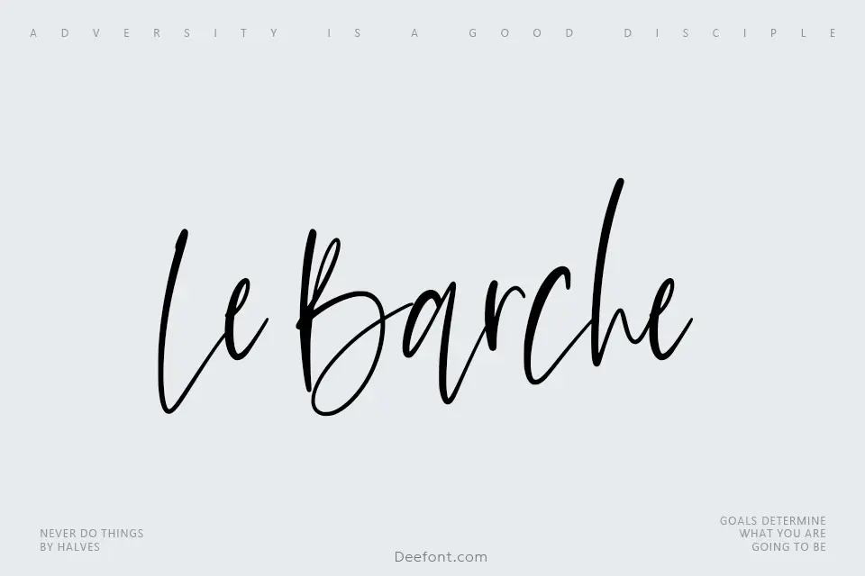 Elevate your designs with Le Barche, a modern handwritten font that exudes elegance and natural charm. Created by Ditatype, this chic typeface features fluid strokes and a sophisticated vibe, making it ideal for wedding invitations, stylish branding, and signature logos. Its authentic calligraphic feel adds a personal touch to quotes and social media graphics.