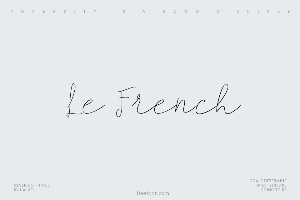 Le French is a stylish handwritten font designed to evoke the feel of casual yet refined penmanship. Its flowing and organic letterforms bring a natural and friendly character to branding, invitations, packaging, and digital projects. With its charming personality, Le French adds a personal touch to any creative work, making it ideal for professionals and hobbyists seeking effortless flair and authenticity. The font stands out for its complete free license and support for special characters, providing both versatility and accessibility for all designers.