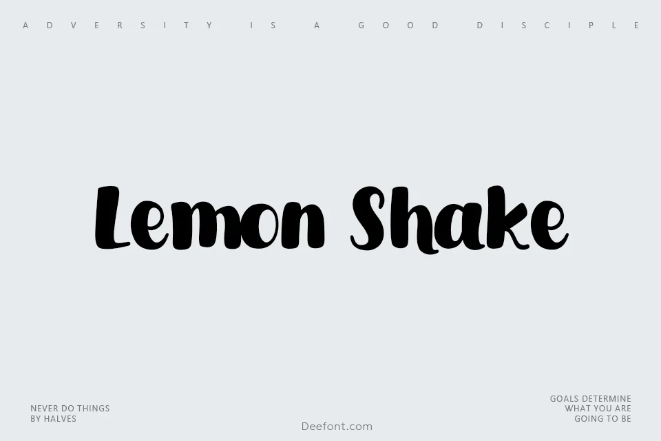 Lemon Shake Shake is a captivating display font designed by Khurasan that exudes delightful and whimsical charm. With its bold, playful strokes and hand-drawn appearance, this font effortlessly captures the essence of vibrant, refreshing design. Its dynamic character makes it ideal for eye-catching headlines, product branding, cheerful invitations, and creative logos. Perfect for designers seeking to add personality and energy to their projects.