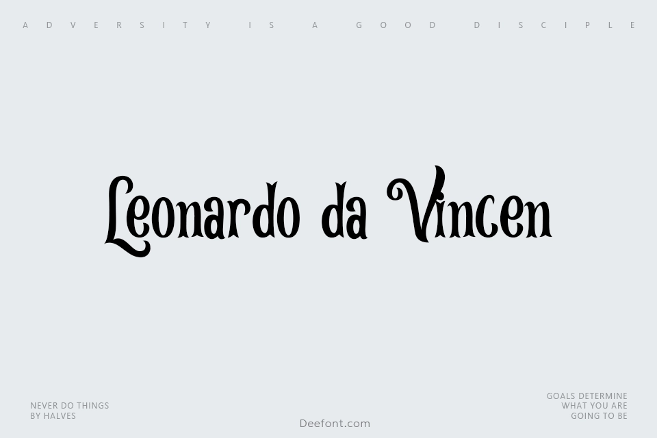 Leonardo da Vincen is a distinctive decorative and retro typeface inspired by nature’s elegant forms and vintage ornaments. The font features a refined aesthetic reminiscent of branches and ornamental designs, making it ideal for creative applications including logos, quotes, beverage labels, and poster designs. With 130 glyphs and support for 12 languages, this fancy font brings artistic flair and vintage charm to various creative projects, offering designers a unique typography solution for branding and decorative purposes.