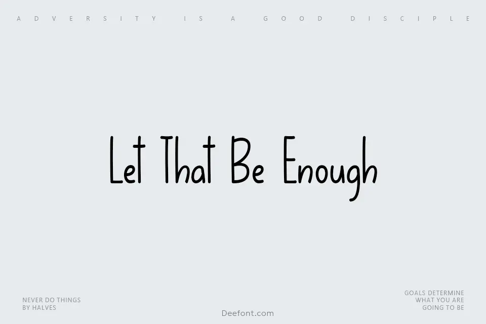 Let That Be Enough Font is a graceful handwritten script typeface featuring tall, flowing letterforms with organic pen-like strokes. This elegant font combines natural handwriting warmth with contemporary design sensibilities, making it ideal for wedding invitations, greeting cards, artistic titles, posters, and decorative headings. The font’s distinctive tall proportions and smooth curves deliver a personal, heartfelt aesthetic perfect for projects seeking authentic hand-lettered appeal. Its legible yet expressive character set works beautifully across both traditional and modern design applications.
