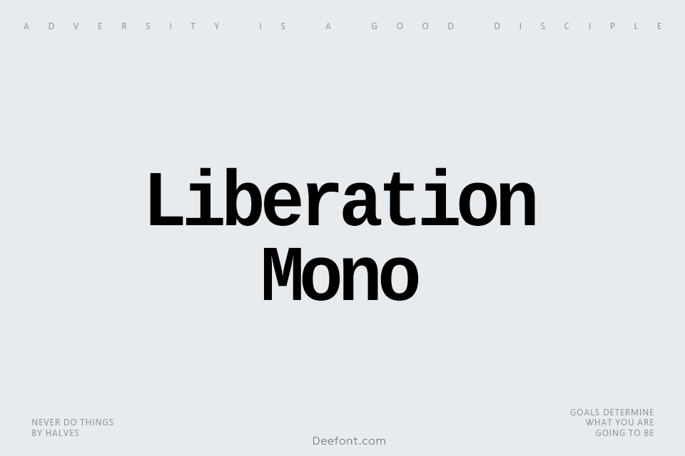 Liberation Mono is a professional monospaced typeface designed for metric compatibility with Courier New, offering improved on-screen readability. This fixed-width font delivers consistent character spacing ideal for developers, code editors, and technical documentation. Featuring four weight variants (Regular, Italic, Bold, and Bold Italic), Liberation Mono combines functionality with clean typography. The font supports 81 languages and includes over 670 glyphs, making it versatile for international applications and publications requiring reliable monospace rendering across diverse platforms.