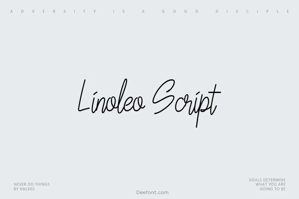Linoleo Script is a carefully crafted monoline script typeface inspired by modern calligraphy, featuring consistent thin strokes and authentic handwriting characteristics. This elegant font excels in display applications including wedding invitations, adventure-themed posters, t-shirt designs, and minimalist branding projects. The letterforms are traced from natural handwriting, offering a balanced blend of sophistication and casual charm suitable for both print and digital media.