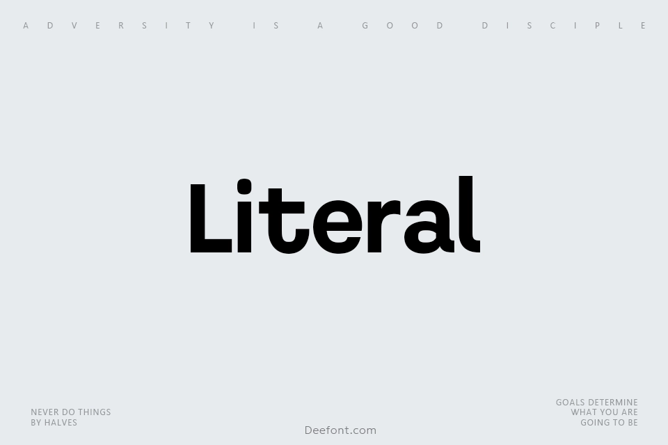 Literal is a classic sans serif typeface with closed shapes, combining simplicity with elegance. Designed as a modern grotesque, it supports Extended Latin and Extended Cyrillic characters across three weights—Light, Regular, and Bold. Perfect for diverse applications including print products, website design, and logo creation, this versatile font delivers both large and small text with exceptional clarity and professional aesthetics. Created in 2019 with meticulous attention to typography details, Literal provides a balanced fusion of sophistication and contemporary design suitable for branding, corporate communication, and creative projects requiring refined visual identity.
